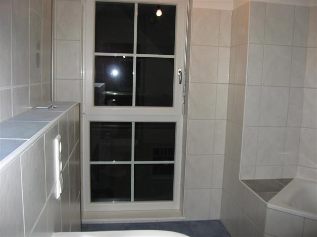 So wie hier im Bad sind alle Fenster im Obergeschoß. Der untere Teil ist feststehend. Sieht klasse aus-aber ich durfte schon die Erfahrung machen, wie schwer der untere Teil zu putzen ist. Mit einem verlängertem Fensterwischer geht’s gerade so lala – falls also jemand eine super Idee hat, wie man das Fenster putzt ohne sich die Arme zu brechen oder aus dem Fenster zu fallen – immer her damit 😉