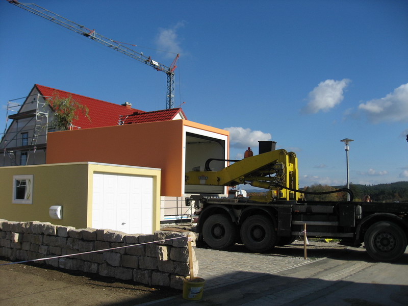 Heute kam sie: unsere Garage. Wir waren ziemlich gespannt wegen der Farbe und wir sind total aus dem Häuschen, weil es haargenau so geworden ist, wie wir es uns gewünscht haben. Auf dem Papier täuschen die Farben ja doch noch etwas, aber die Farbe sieht auf der Garage einfach nur geil aus.